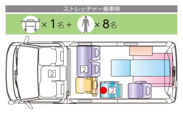 ストレッチャーでの乗車付添いの方も乗車可能です。